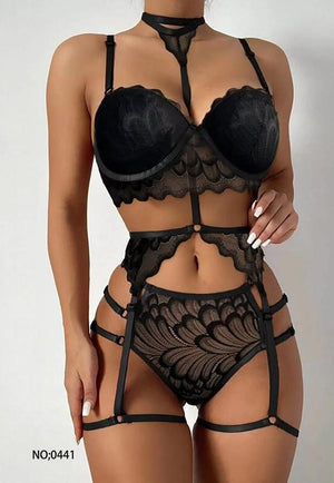 Sajiero Super Embroidered Exotic Garter Belt Set